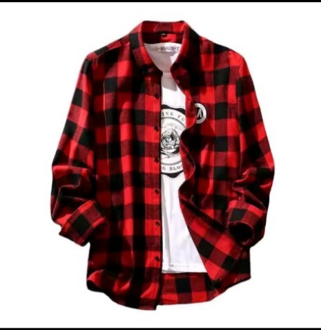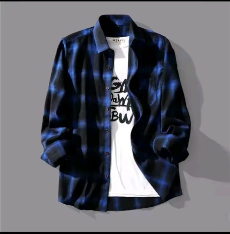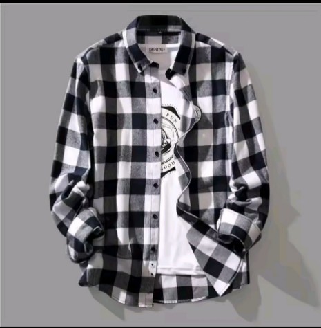 Men's Plaid Shirt Autumn Trendy Loose Casual Long Sleeve Top Coat Black White Grids Style Spring Autumn Model Male Outerwear