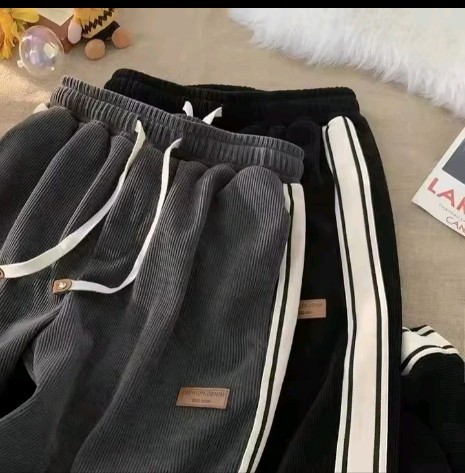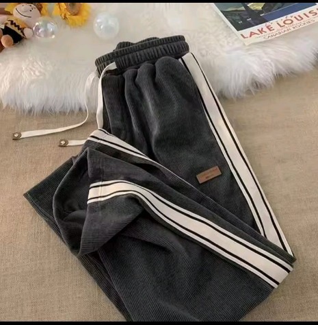 Men's spring and autumn side striped loose straight sports pants, high street ruff handsome corduroy casual pants