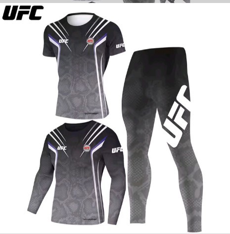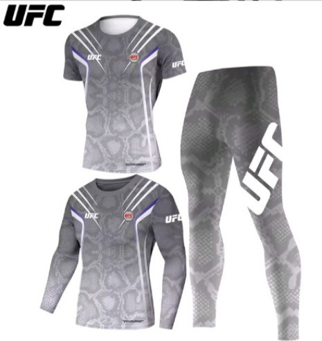 UFC Men's 3D Tracksuit Compression Sport Suit Gym Fitness Clothes Running Jogging Sports Wear Training Exercise Workout Rashgard