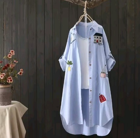 Women Cotton Embroidery Loose Long White Shirts 2025 Spring Autumn New Casual Office Lady Blouse Female Top Loose shirt